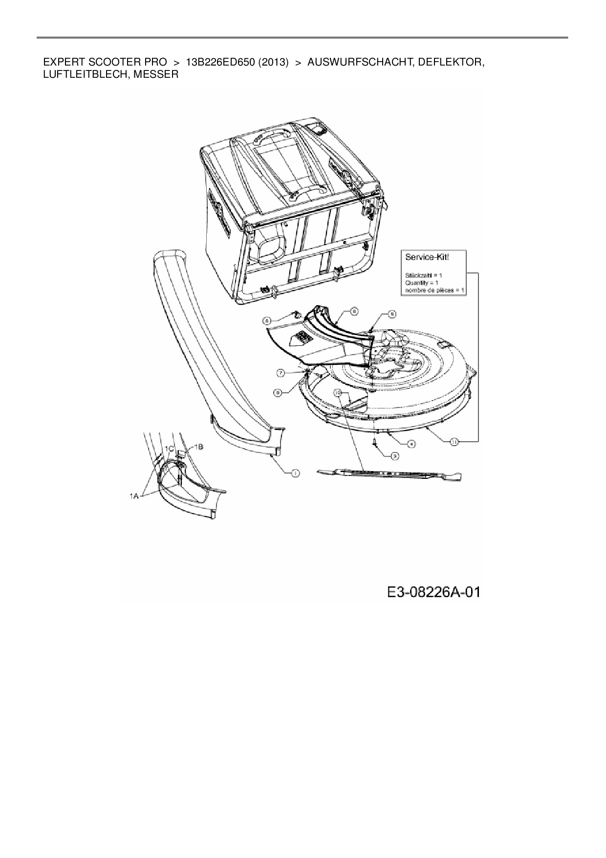Ersatzteile für Rasentraktor Wolf-Garten Expert Expert Scooter Pro aus der Zeichnung Auswurfschacht, Deflektor, Luftleitblech, Messer: