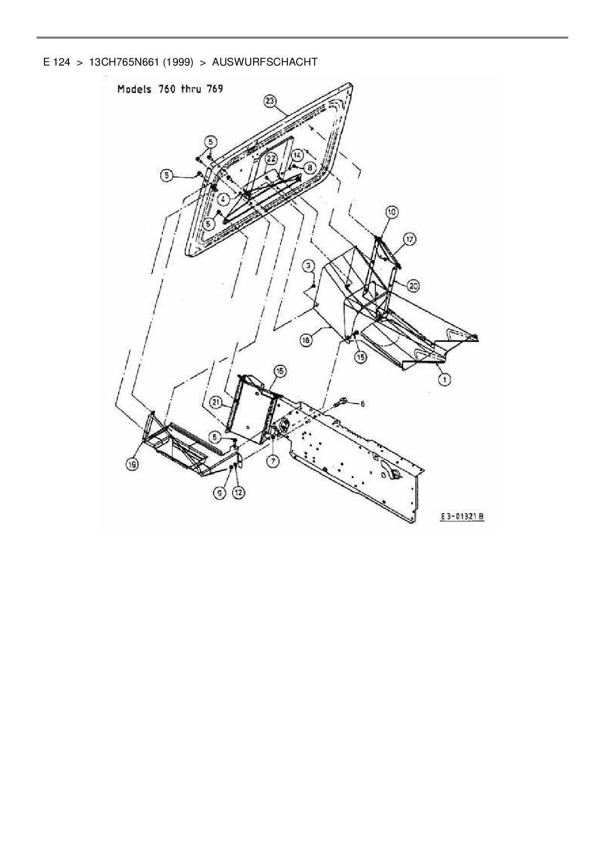 Ersatzteile für Rasentraktor MTD E 124 aus der Zeichnung Auswurfschacht: