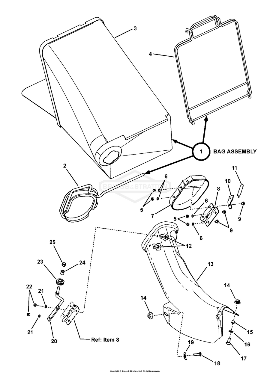 Zeichnung Snapper 7800064 - ESPV21, 21" 6.5GT Steel Deck Easy Line Euro Walk Mower - Zeichnung BAGGING COMPONENTS: