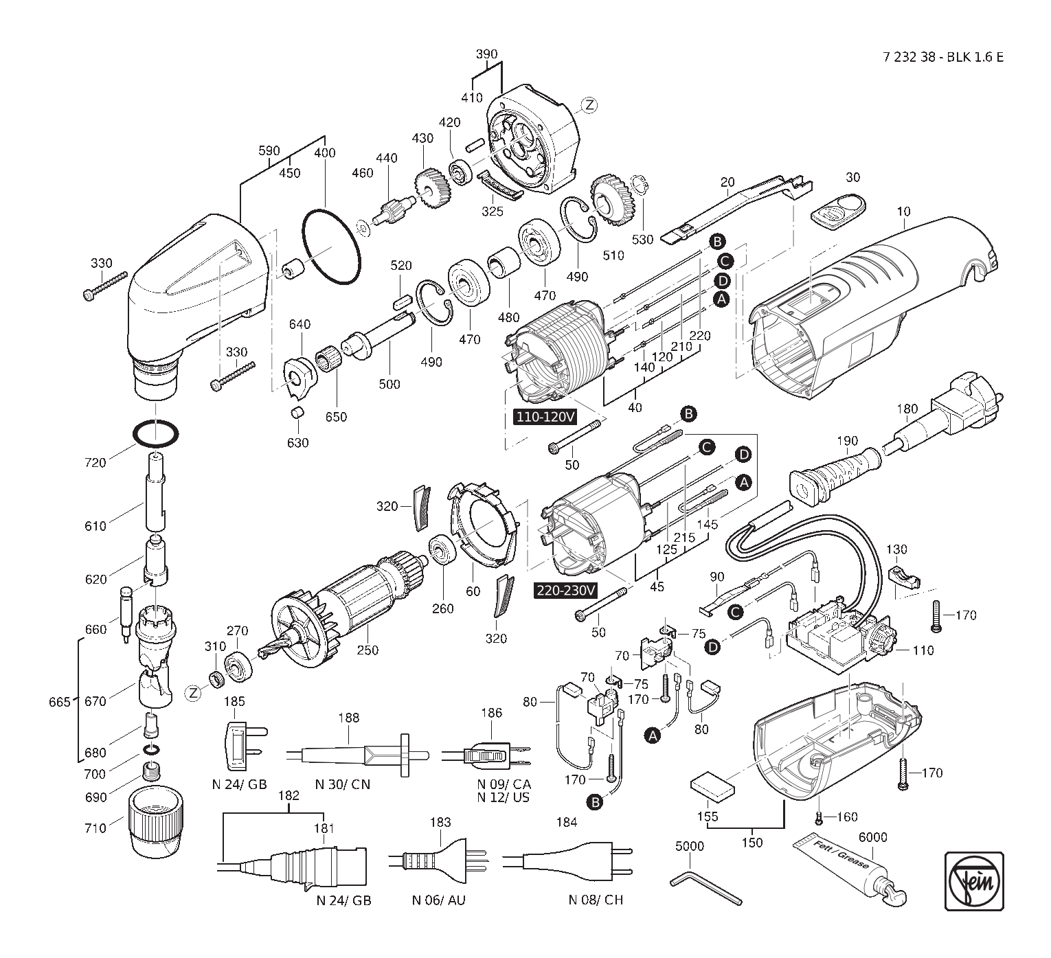 Folgende Ersatzteile für Fein BLK1.6E 72323800230 können Sie hier bestellen:
