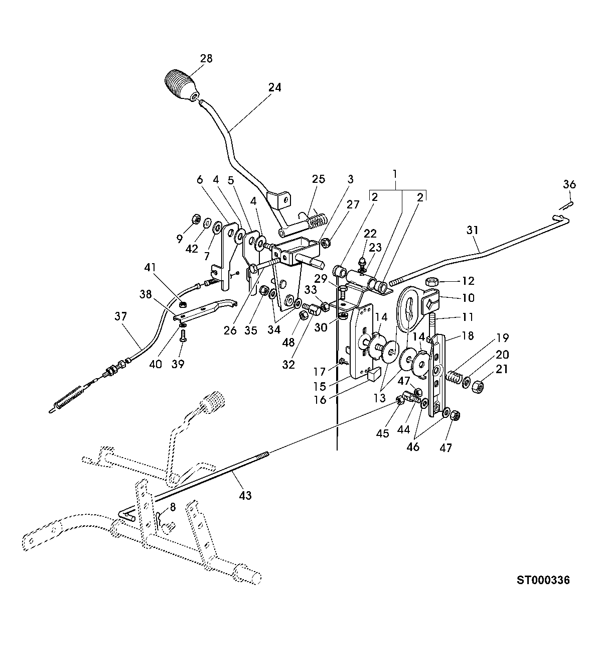 Zeichnung Sollten Sie Fragen zu einem Ersatzteil vom Sabo Aufsitzmäher 72-12H (SAB00435, SAB00441)(Europa-Ausgabe) - PC4466 BREMSGESTAENGE, SCHALTGESTAENGE - ST132764 haben, können Sie uns gerne eine E-Mail (mit einem Foto vom Typenschild Ihres Gerätes) schreiben oder eine Ersatzteilanfrage stellen.