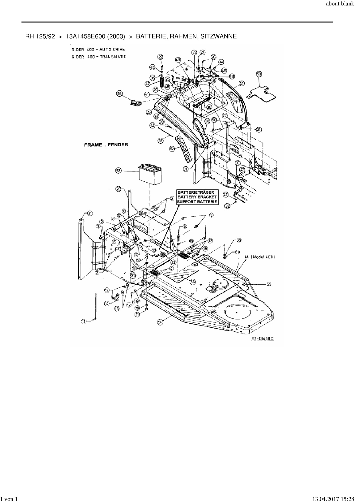 Ersatzteile für Rasentraktor MTD RH 125/92 aus der Zeichnung Batterie, Rahmen, Sitzwanne: