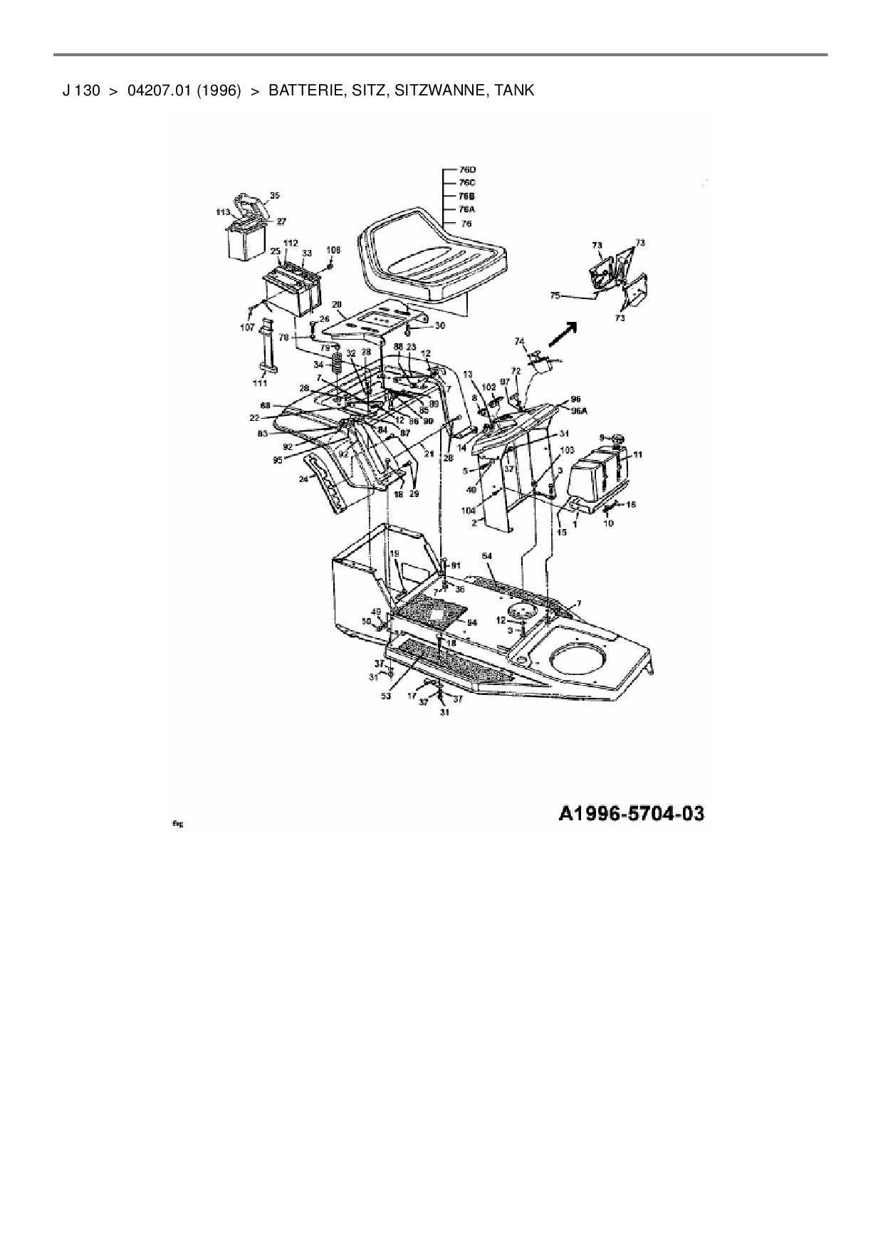 Ersatzteile für Rasentraktor MTD J 130 aus der Zeichnung Batterie, Sitz, Sitzwanne, Tank: