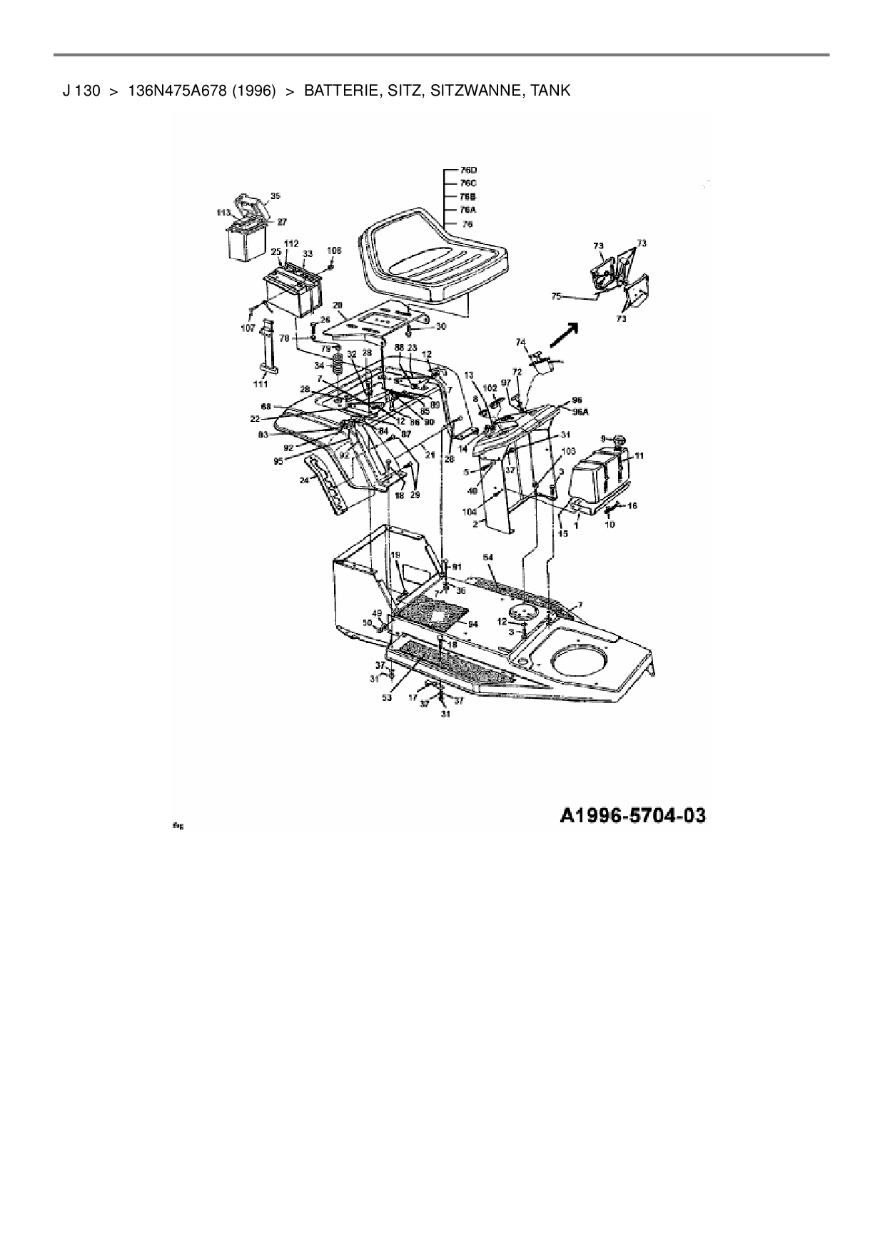 Ersatzteile für Rasentraktor MTD J 130 aus der Zeichnung Batterie, Sitz, Sitzwanne, Tank: