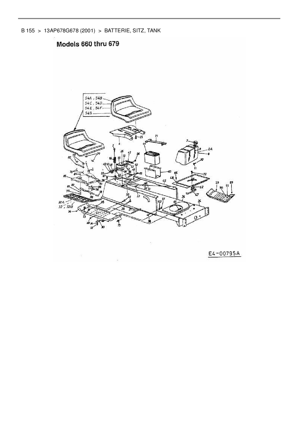 Ersatzteile für Rasentraktor MTD B 155 aus der Zeichnung Batterie, Sitz, Tank: