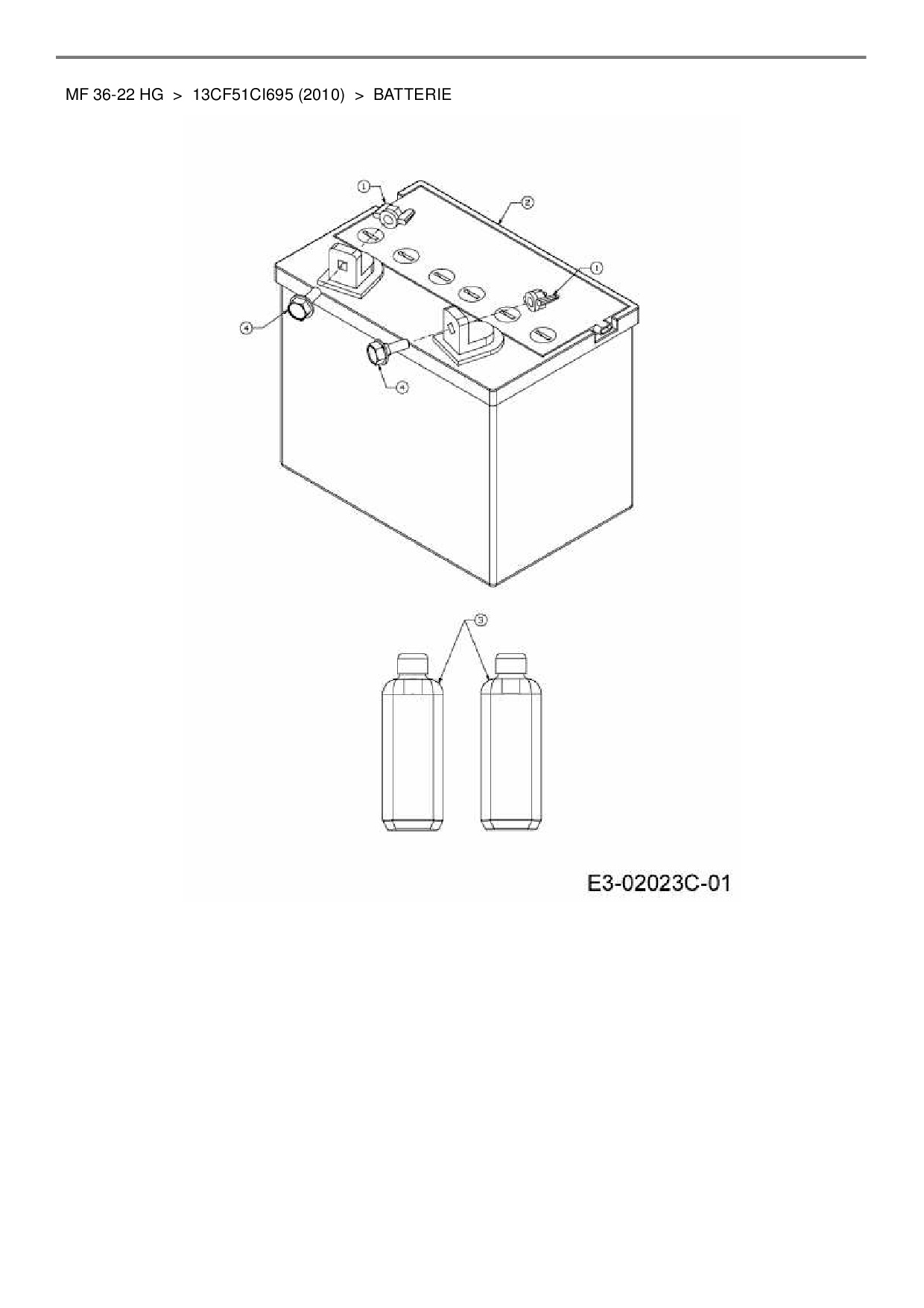 Ersatzteile für Rasentraktor Massey Ferguson MF 36-22 HG aus der Zeichnung Batterie: