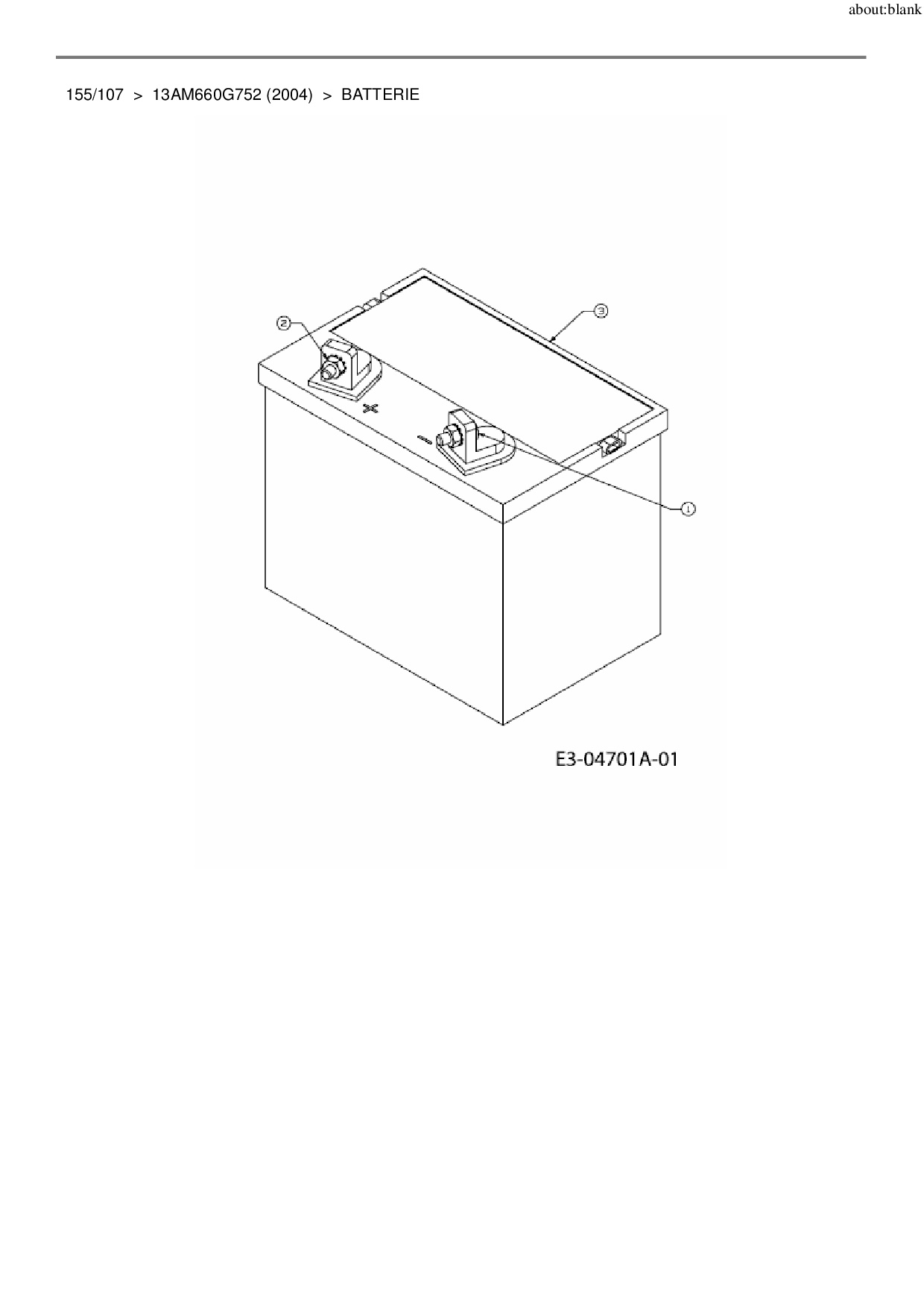 Ersatzteile für Rasentraktor MTD 155/107 aus der Zeichnung Batterie: