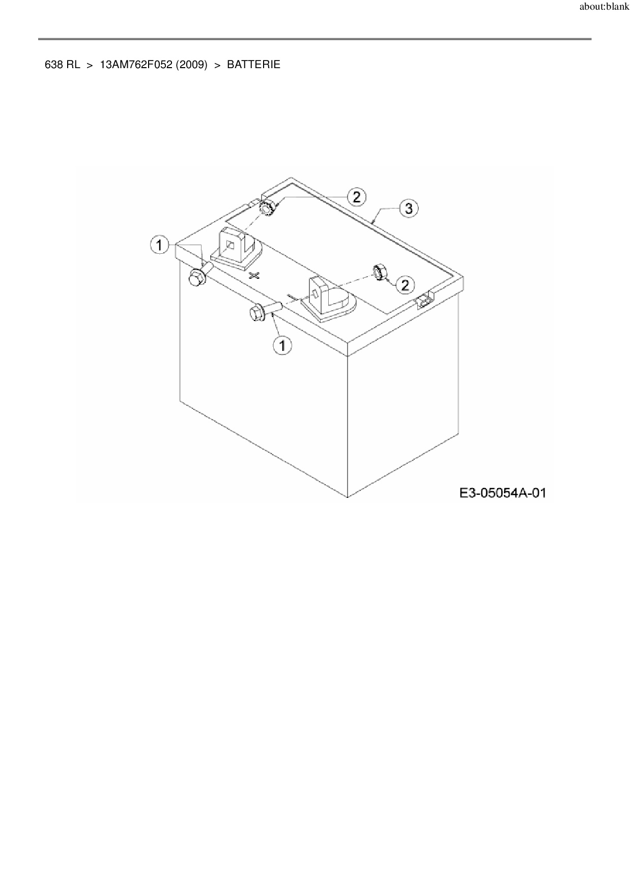 Ersatzteile für Rasentraktor MTD 638 RL aus der Zeichnung Batterie: