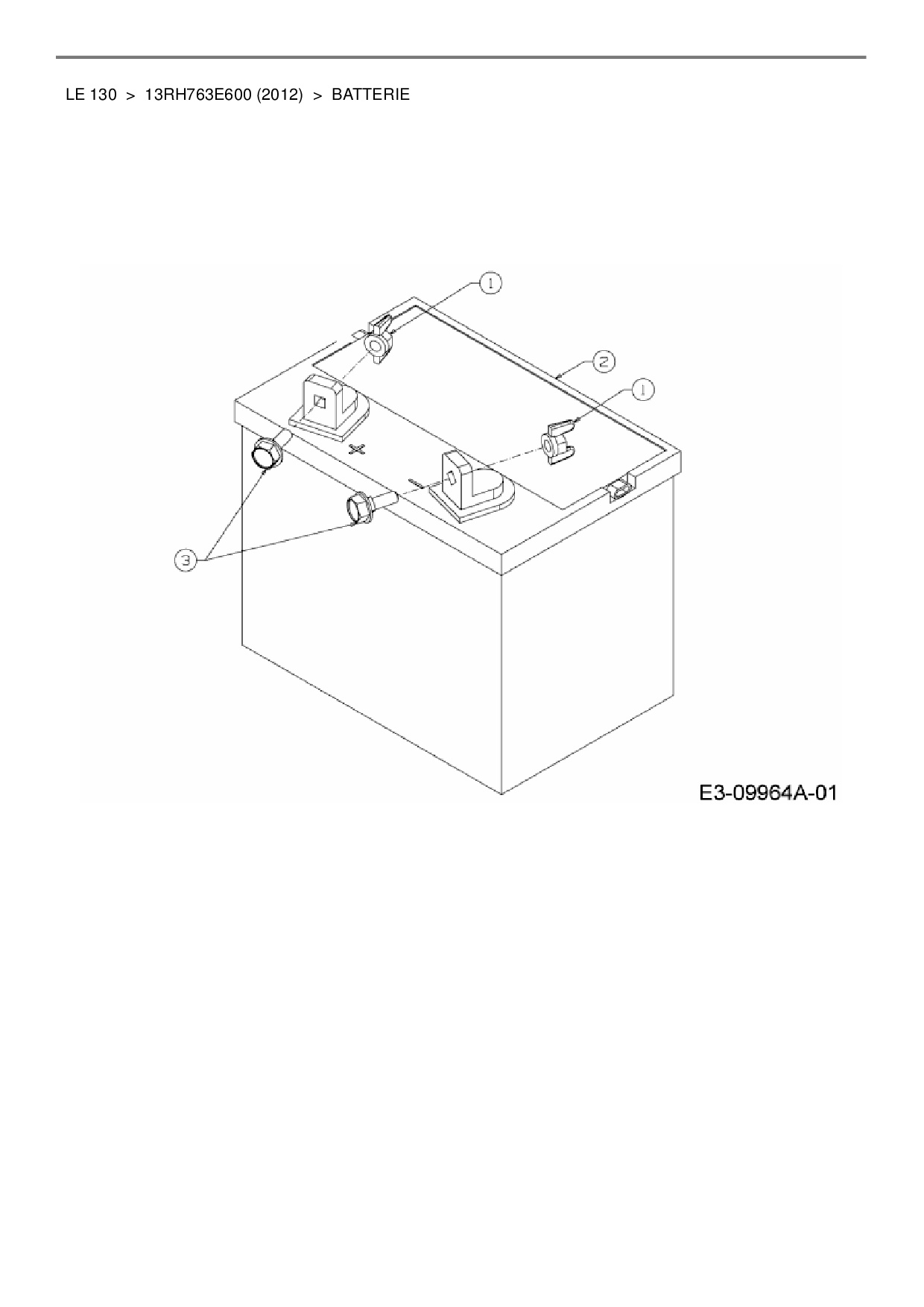 Ersatzteile für Rasentraktor MTD LE 130 aus der Zeichnung Batterie: