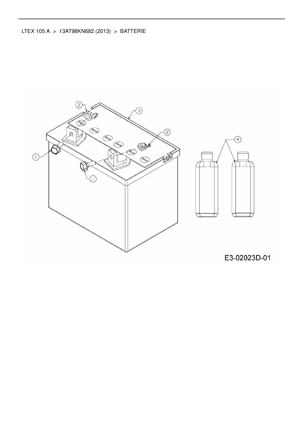 Ersatzteile für Rasentraktor MTD LTEX 105 A aus der Zeichnung Batterie: