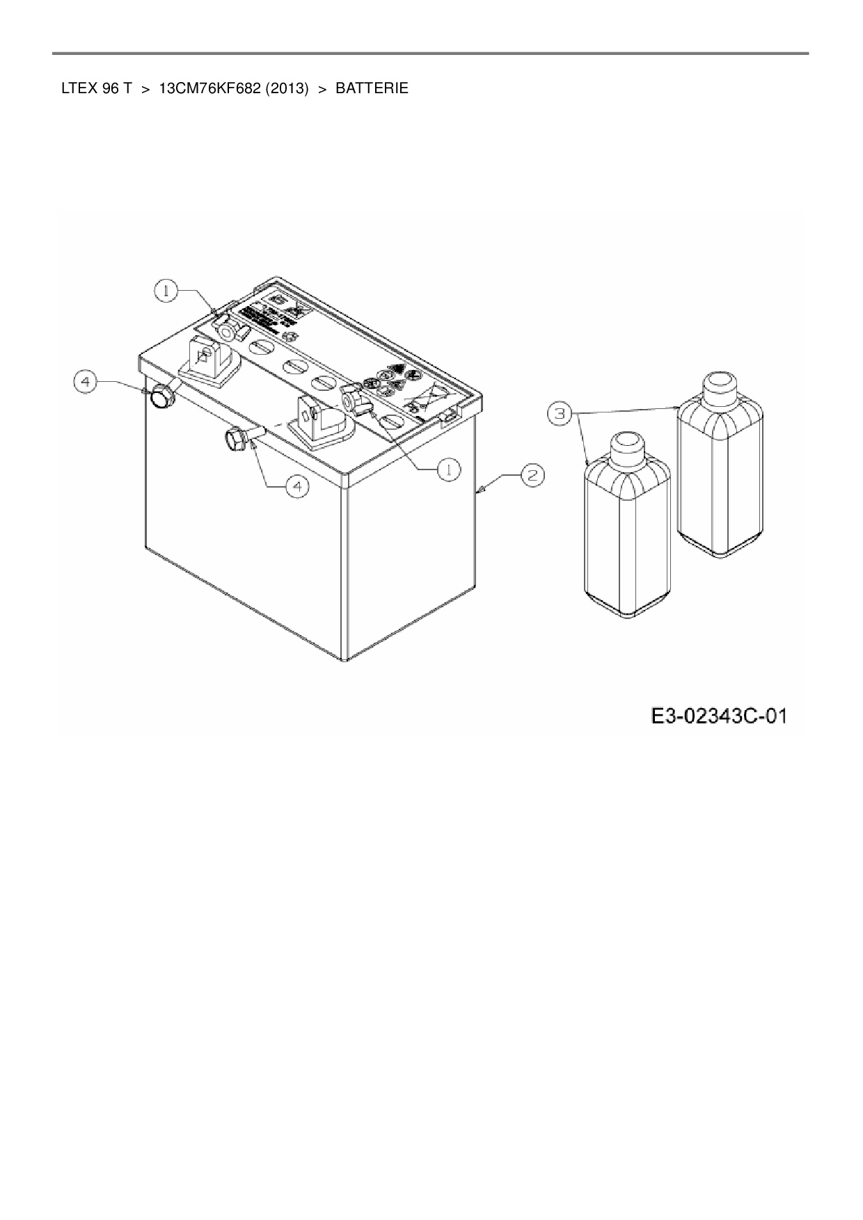 Ersatzteile für Rasentraktor MTD LTEX 96 T aus der Zeichnung Batterie: