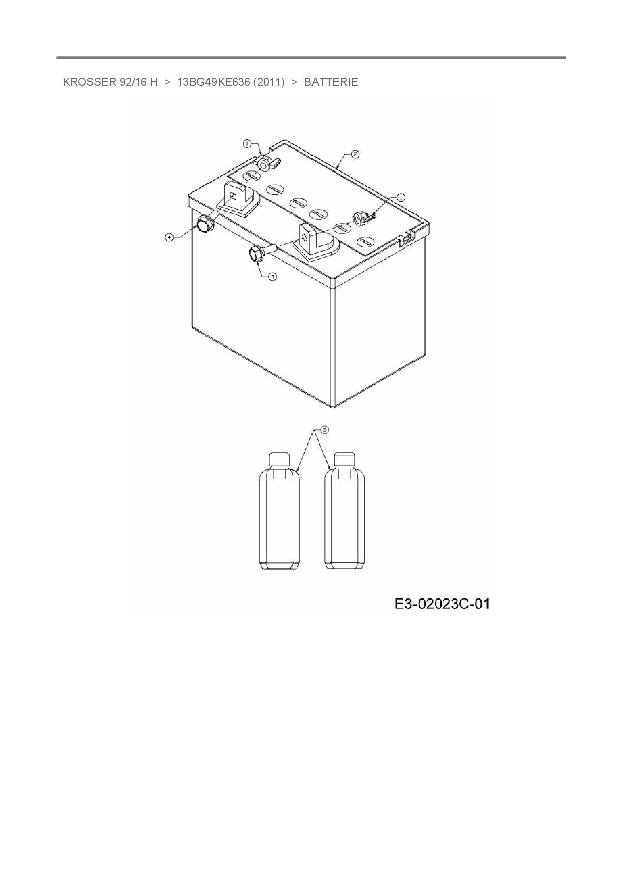 Ersatzteile für Rasentraktor Oleo-Mac Krosser 92/16 H aus der Zeichnung Batterie: