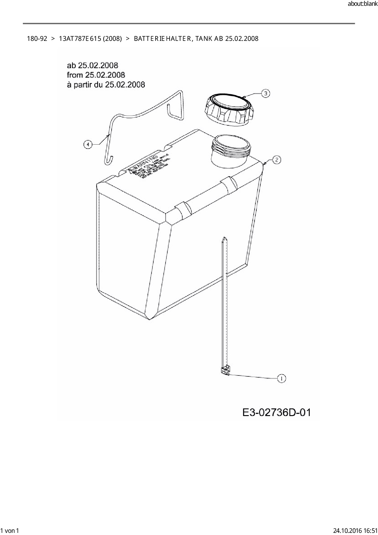 Ersatzteile für Rasentraktor Black Edition 180-92 aus der Zeichnung Batteriehalter, Tank ab 25.02.2008: