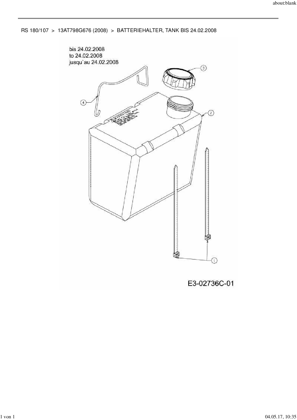 Ersatzteile für Rasentraktor MTD RS 180/107 aus der Zeichnung Batteriehalter, Tank bis 24.02.2008: