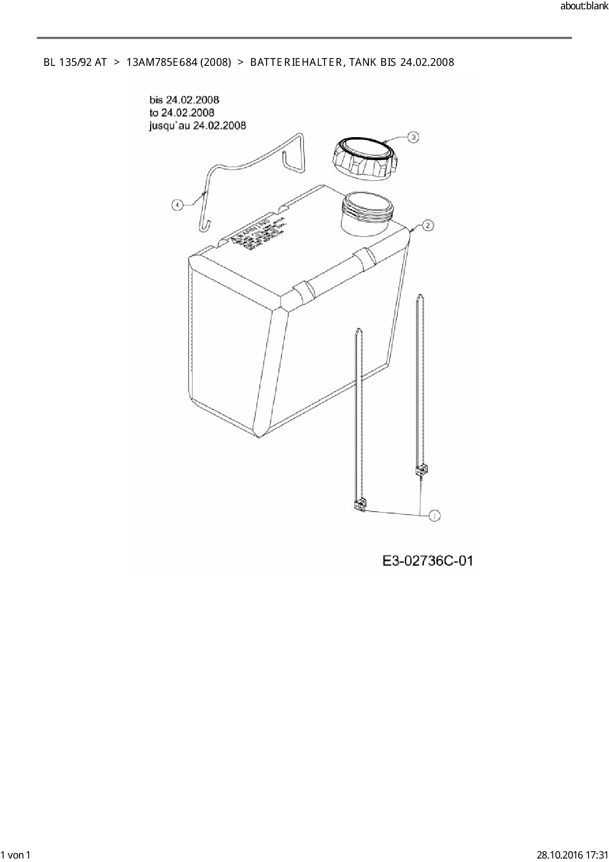 Ersatzteile für Rasentraktor Bolens BL 135/92 AT aus der Zeichnung Batteriehalter, Tank bis 24.02.2008: