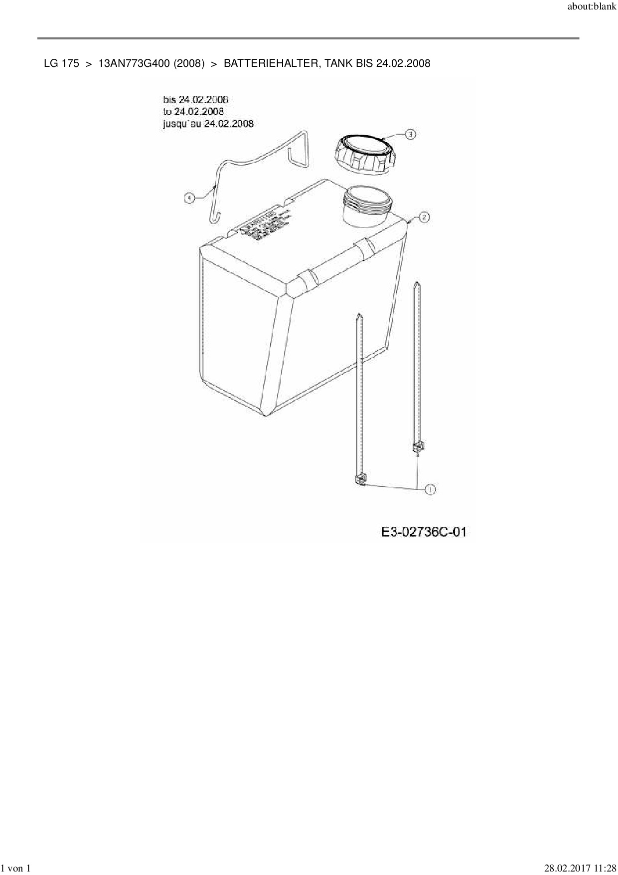 Ersatzteile für Rasentraktor MTD LG 175 aus der Zeichnung Batteriehalter, Tank bis 24.02.2008: