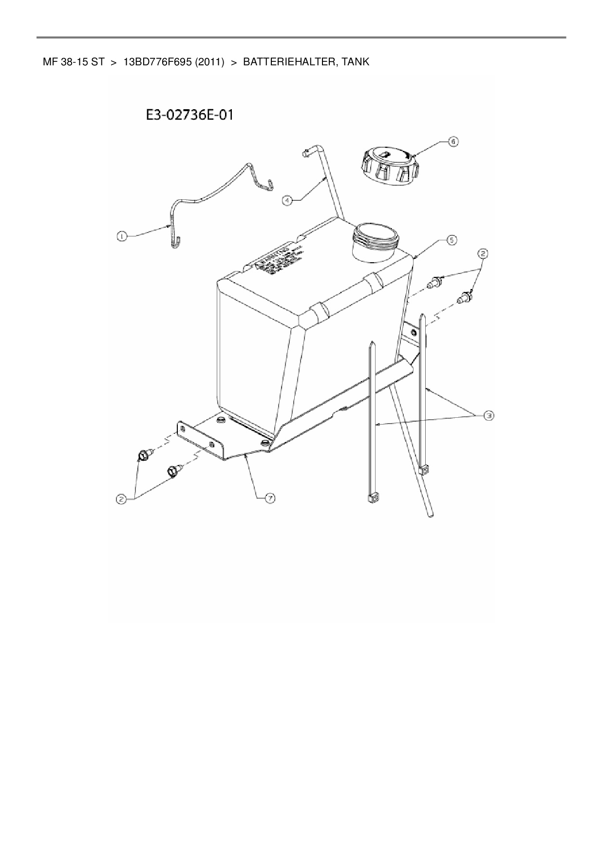Ersatzteile für Rasentraktor Massey Ferguson MF 38-15 ST aus der Zeichnung Batteriehalter, Tank: