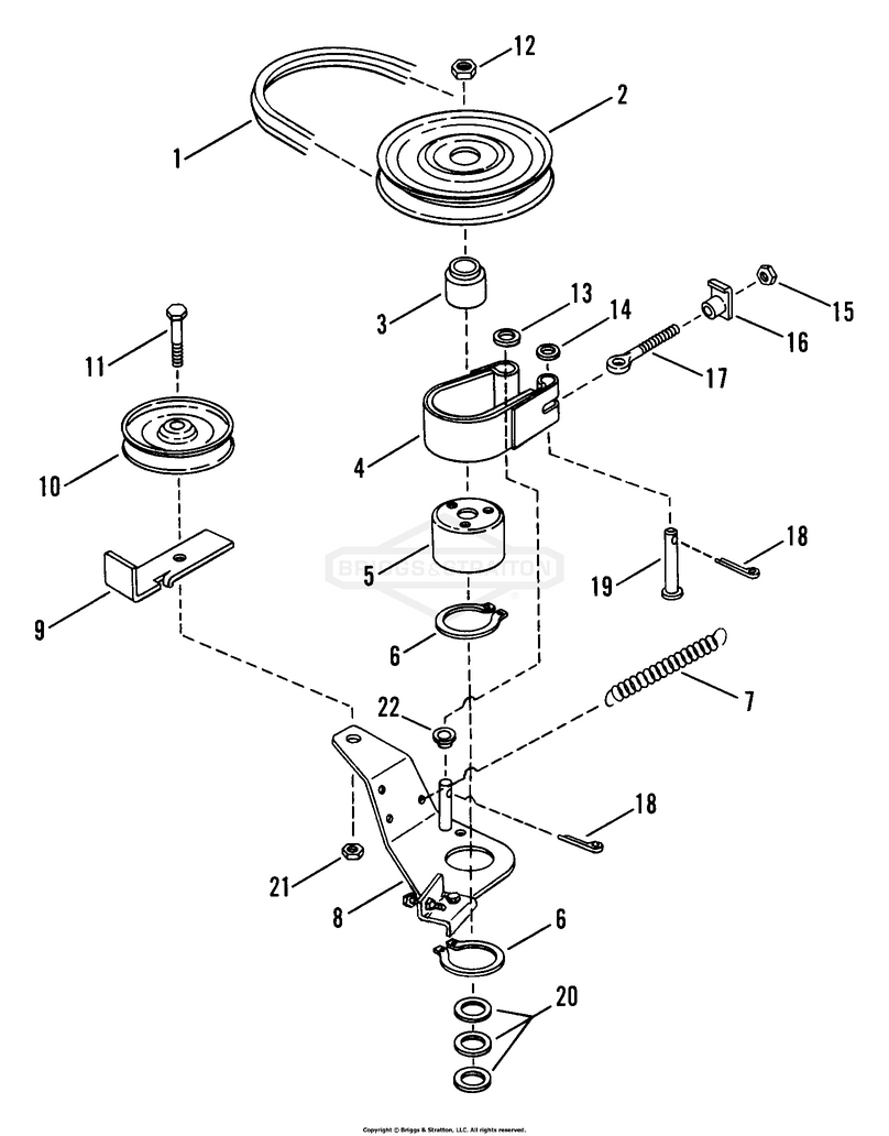 Zeichnung Snapper 80168 - Y30081B, 30" 8 HP Mid-Duty Commercial Estate Mower Series 1 - Zeichnungsgruppe Belt, Brake, Idler Arm: