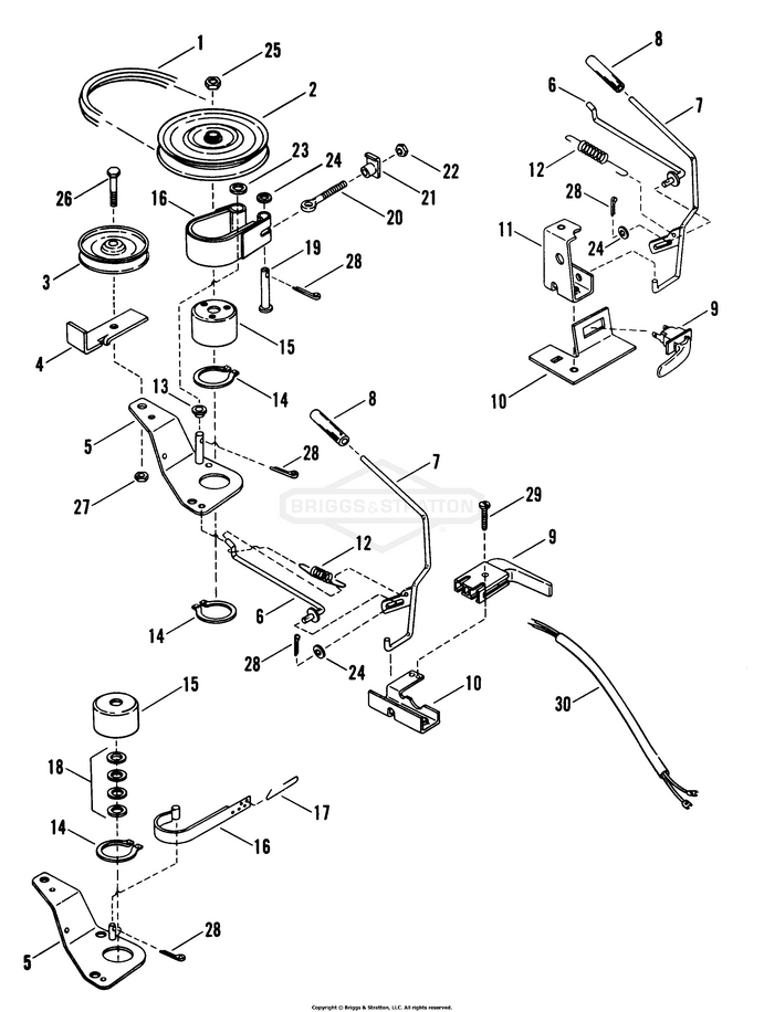 Zeichnung Snapper 89498 - 26083S, 26" 8 HP Rear Engine Rider Series 3 - Zeichnungsgruppe Belts, Brakes, Interlocks (Standard):