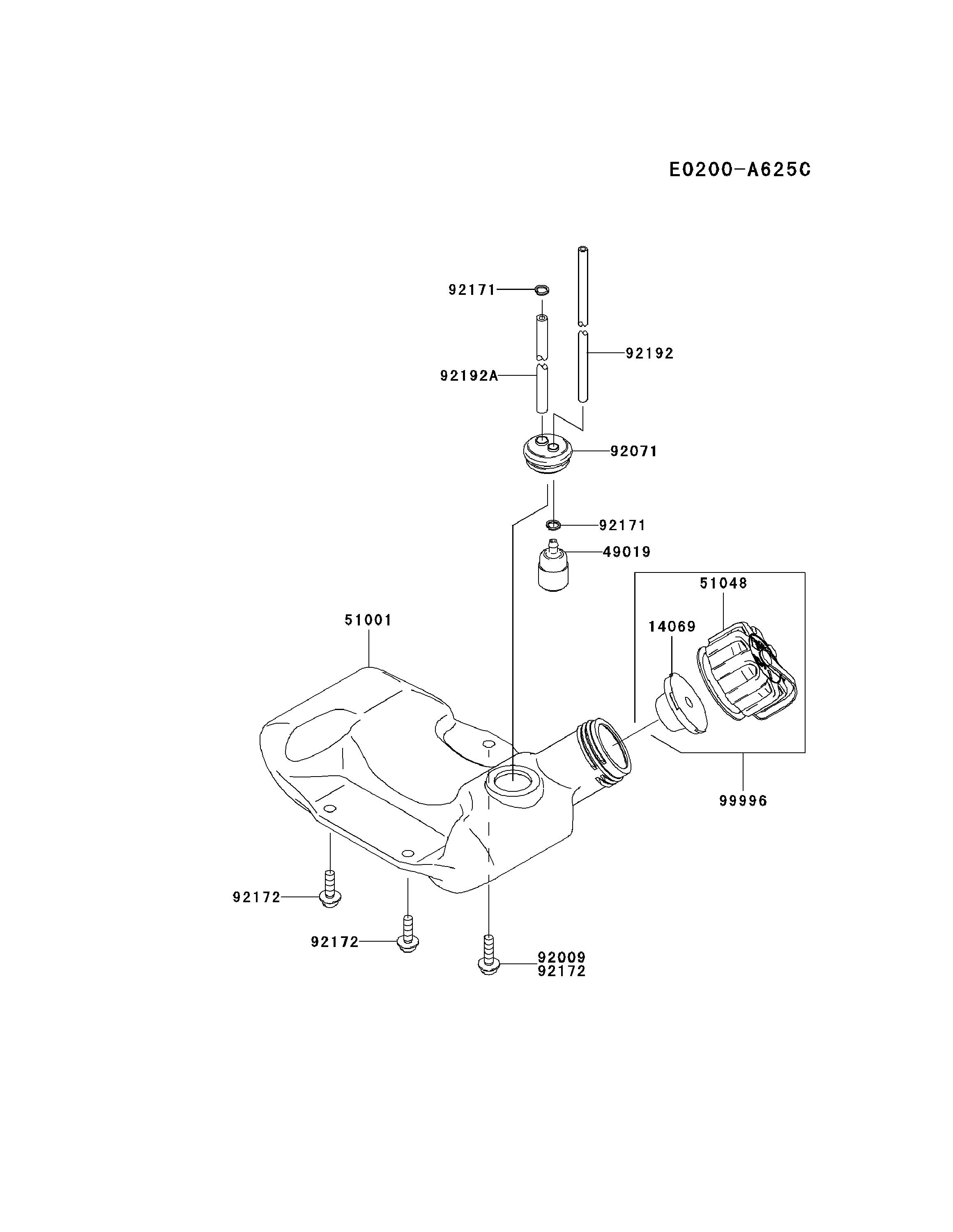 Hier finden Sie alle Ersatzteile von Kawasaki Heckenschere HK525B-AS50 (KCS525A) aus der Zeichnung Benzintank/Treibstoffventil: