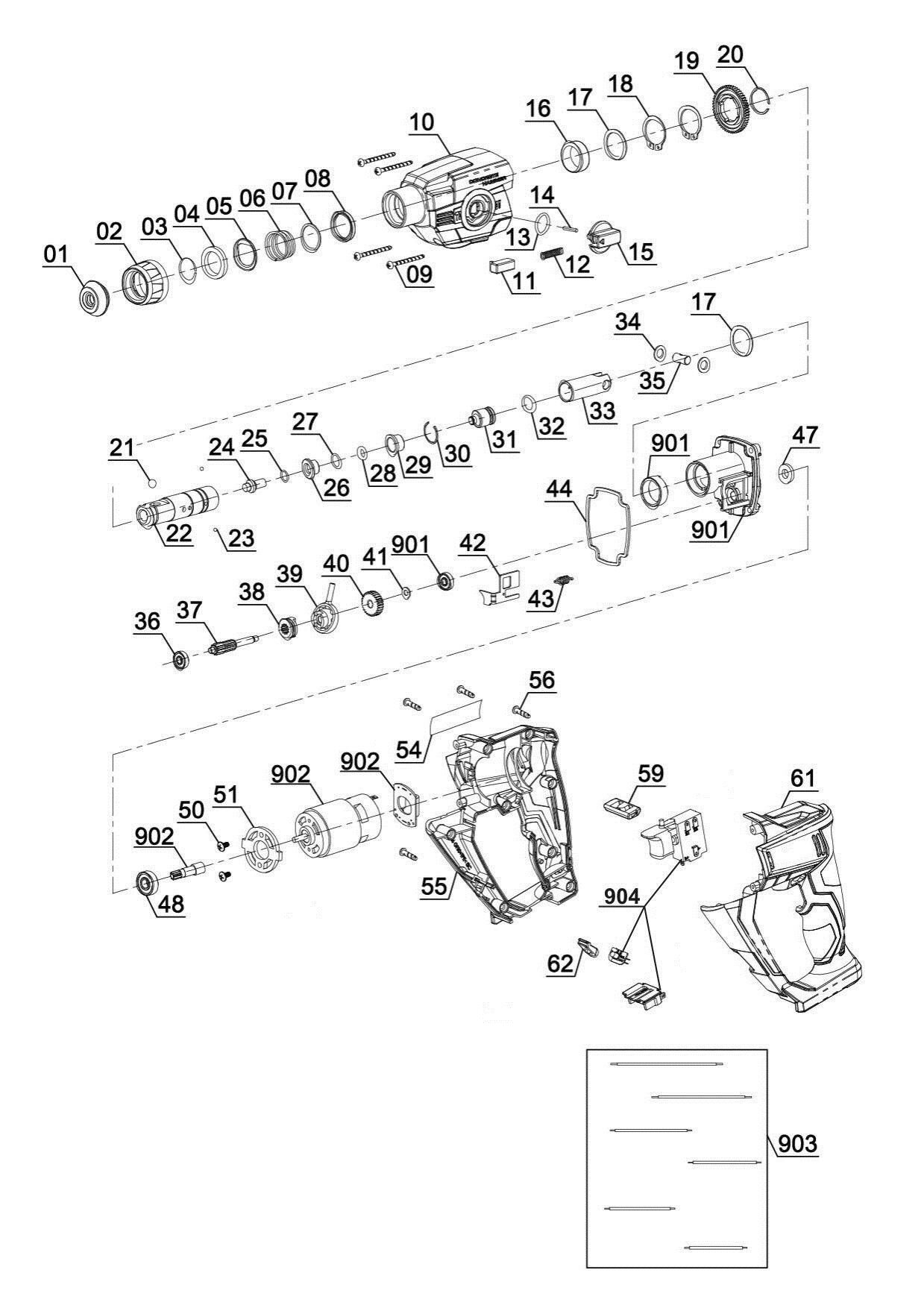 Zeichnung Sollten Sie Fragen zu einem Ersatzteil vom Ozito Bohrhammer PXRHS-300 ( 340813011015 ) haben, können Sie uns gerne eine E-Mail (mit einem Foto vom Typenschild Ihres Gerätes) schreiben oder eine Ersatzteilanfrage stellen.