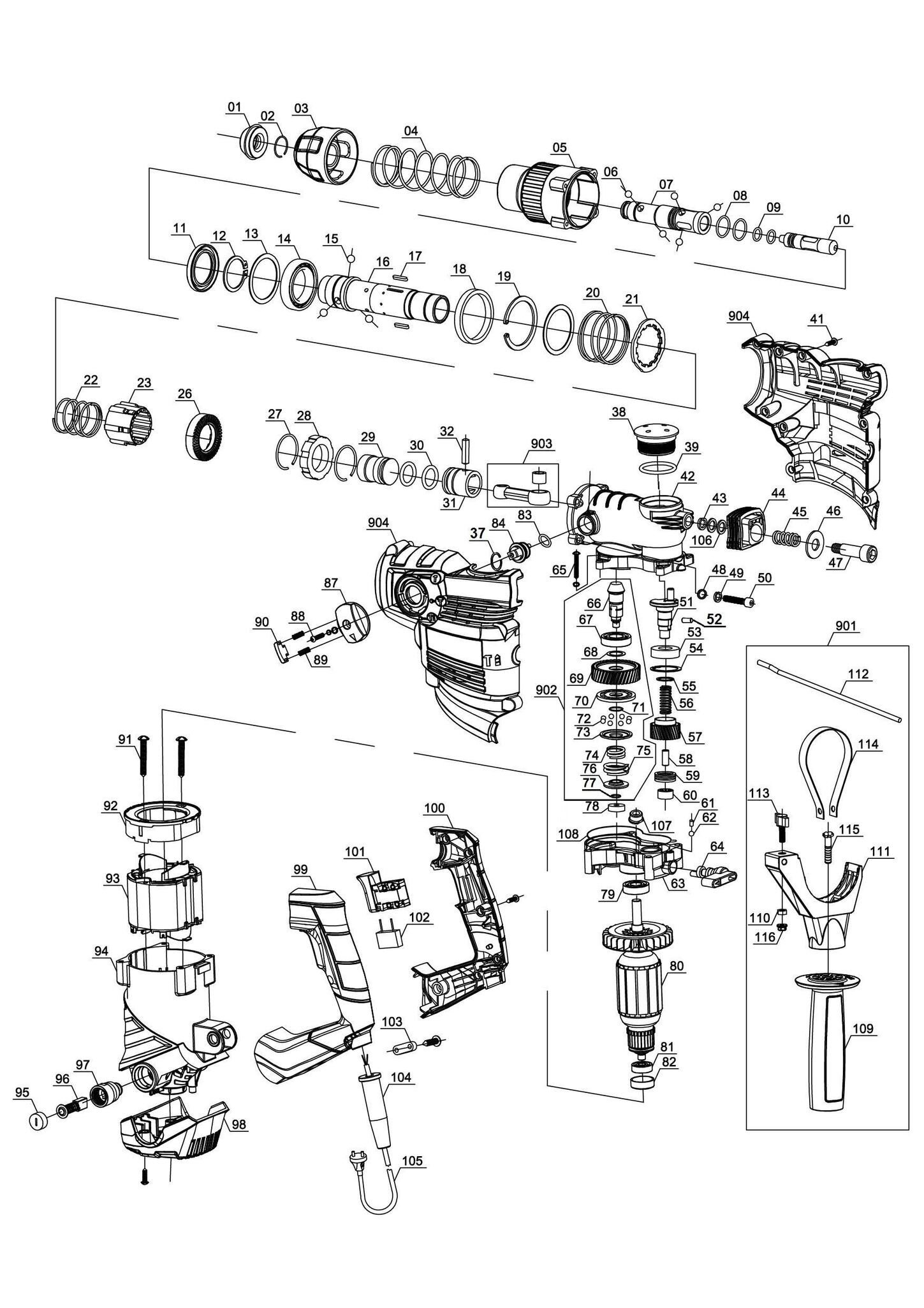 Zeichnung Sollten Sie Fragen zu einem Ersatzteil vom Ozito Bohrhammer RHD-1600 ( 3000091 ) haben, können Sie uns gerne eine E-Mail (mit einem Foto vom Typenschild Ihres Gerätes) schreiben oder eine Ersatzteilanfrage stellen.