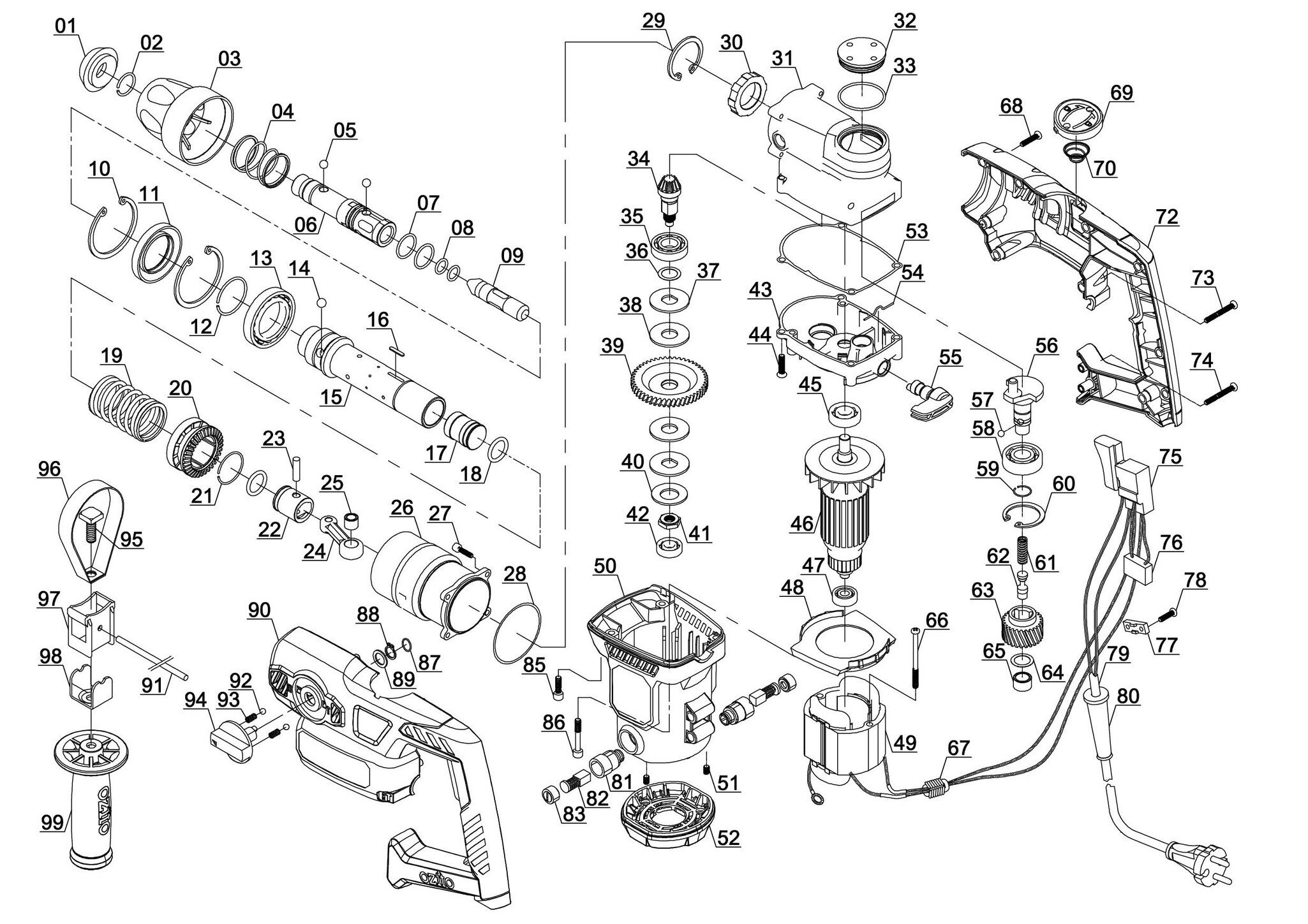 Ersatzteile für Ozito Bohrhammer RHD-4100U, EX, UK ( 4472230 )
