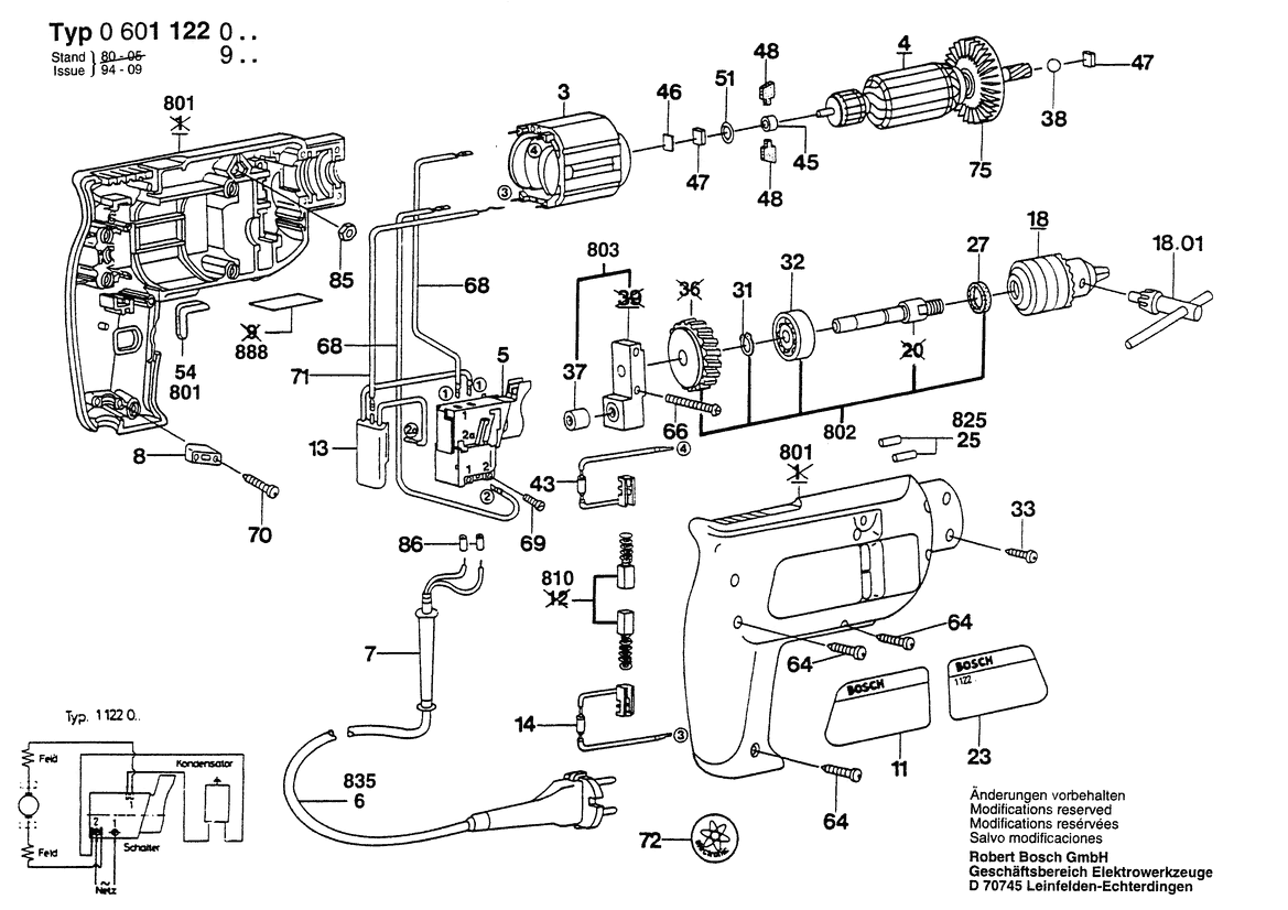 Zeichnung Sollten Sie Fragen zu einem Ersatzteil vom Bosch Bohrmaschine Bohrmaschine | 240 V | 027 - AU (0 601 122 037) haben, können Sie uns gerne eine E-Mail (mit einem Foto vom Typenschild Ihres Gerätes) schreiben oder eine Ersatzteilanfrage stellen.