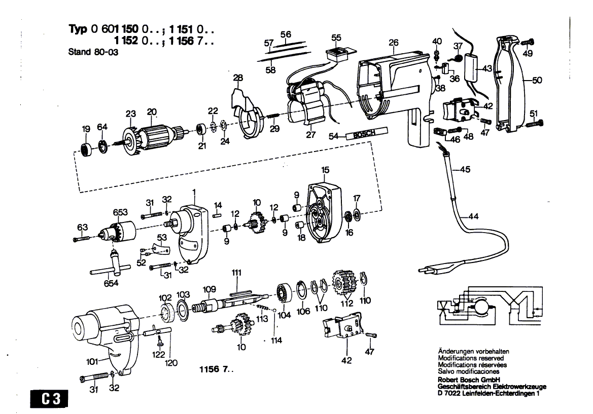Zeichnungen von Bosch Bohrmaschine ELECTRONIC mit der Geräte-Artikelnummer 0 601 156 701