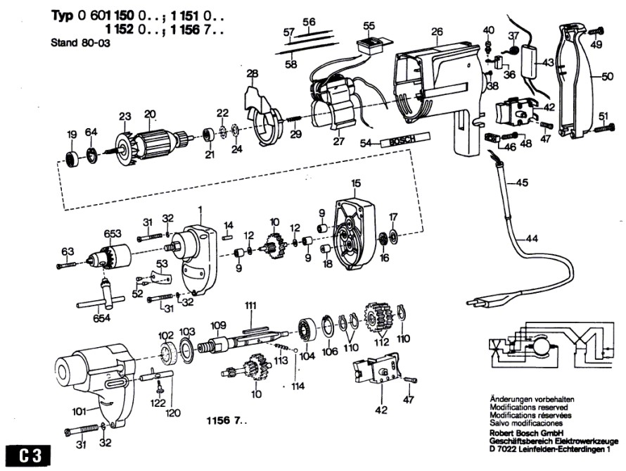 Zeichnung Bosch Bohrmaschine ELECTRONIC 0 601 156 732: