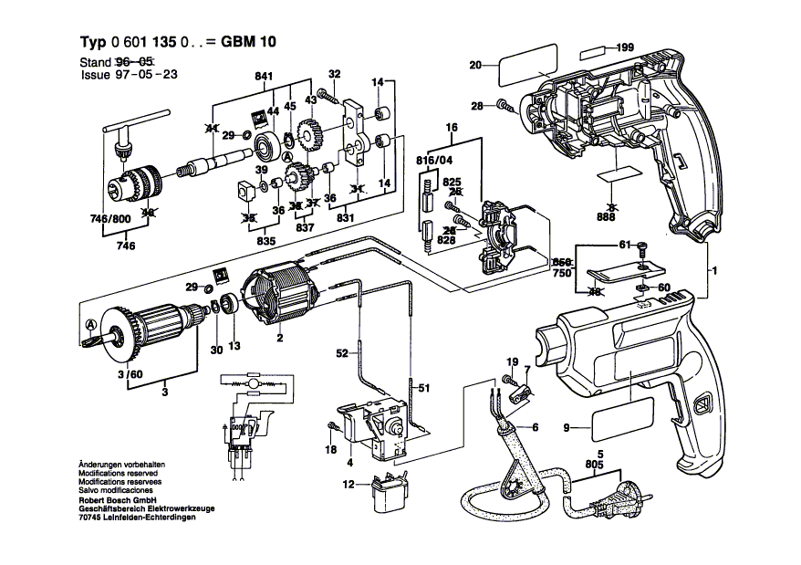 Zeichnungen von Bosch Bohrmaschine GBM 10 mit der Geräte-Artikelnummer 0 601 135 060