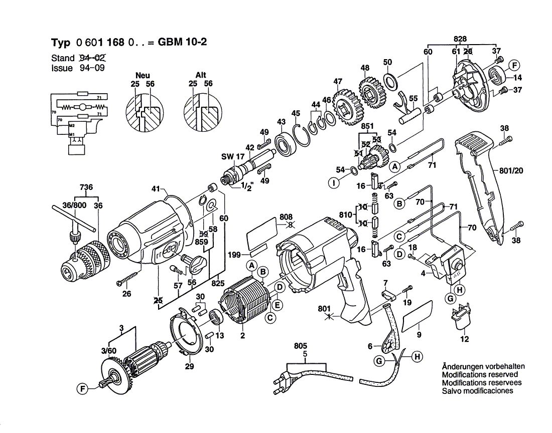 Zeichnungen von Bosch Bohrmaschine GBM 10-2 mit der Geräte-Artikelnummer 0 601 168 003