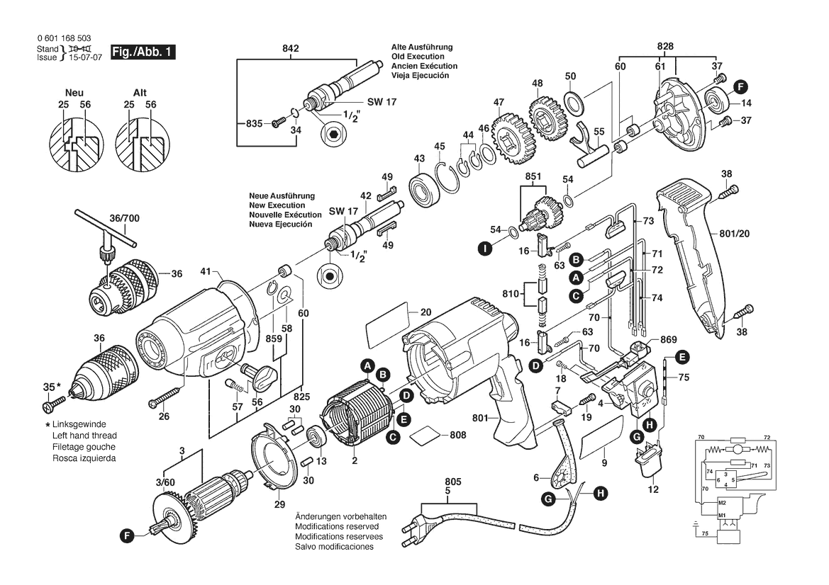 Ersatzteile für Bosch Bohrmaschine GBM 10-2 RE | 230 V | 001 - EU (0 601 168 503)