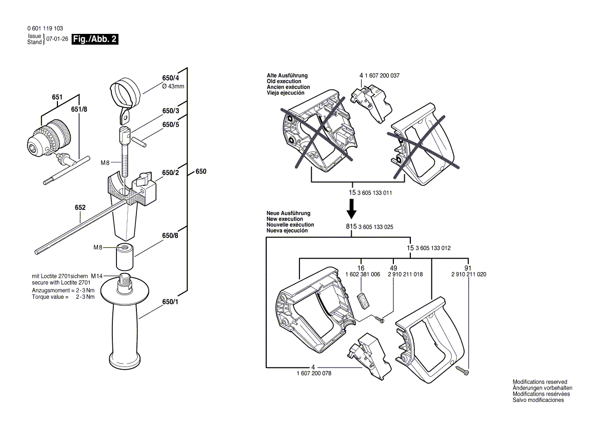 Zeichnungen von Bosch Bohrmaschine GBM 13 mit der Geräte-Artikelnummer 0 601 119 150
