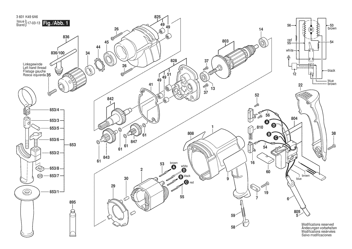 Zeichnung Sollten Sie Fragen zu einem Ersatzteil vom Bosch Bohrmaschine GBM 13 HRE | 240 V | 027 - AU (3 601 K49 6A8) haben, können Sie uns gerne eine E-Mail (mit einem Foto vom Typenschild Ihres Gerätes) schreiben oder eine Ersatzteilanfrage stellen.