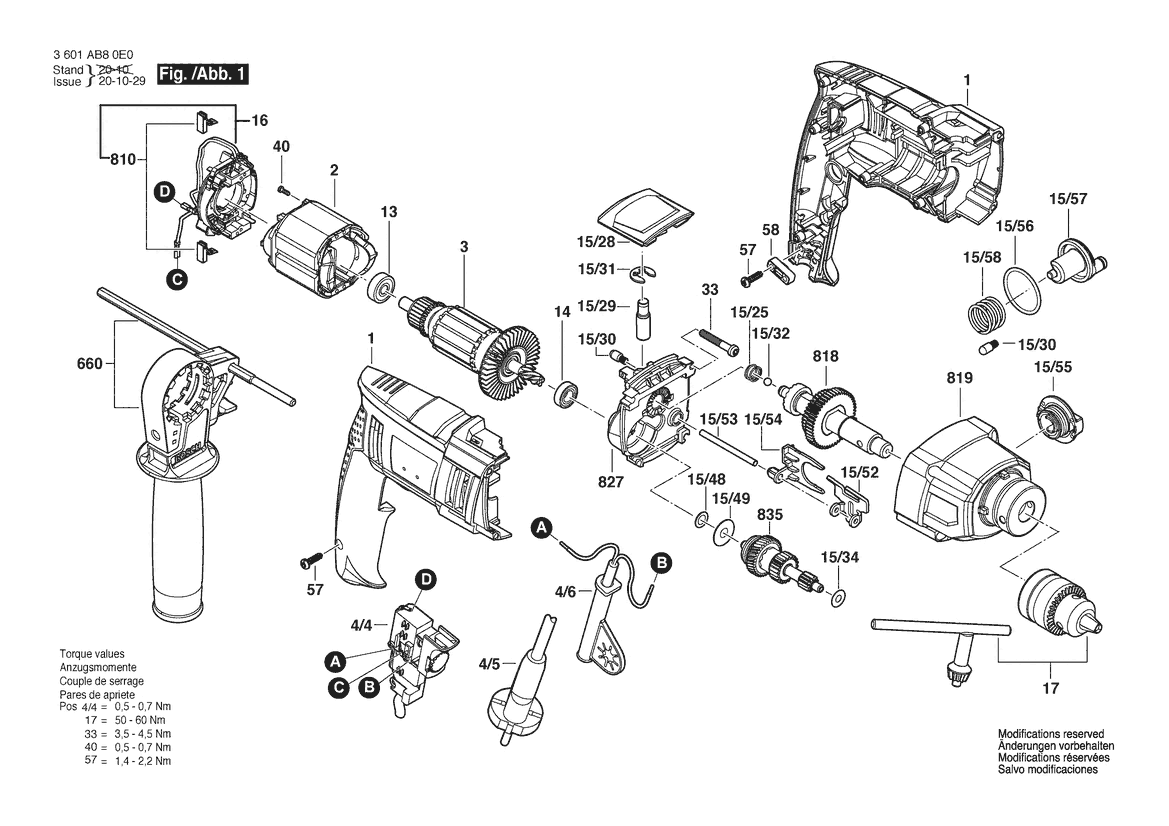 Zeichnung Sollten Sie Fragen zu einem Ersatzteil vom Bosch Bohrmaschine GBM 16-2 RE BT | 220 V | 044 - LAM (3 601 AB8 0E0) haben, können Sie uns gerne eine E-Mail (mit einem Foto vom Typenschild Ihres Gerätes) schreiben oder eine Ersatzteilanfrage stellen.