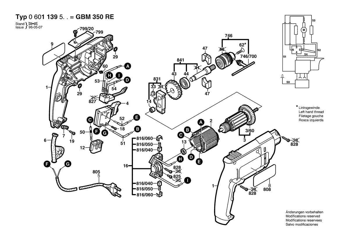 Ersatzteile für Bosch Bohrmaschine GBM 350 RE | 230 V | 001 - EU (0 601 139 561)