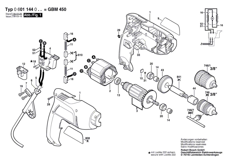 Hier finden Sie alle Ersatzteile für Bosch Bohrmaschine GBM 450 0 601 144 050: