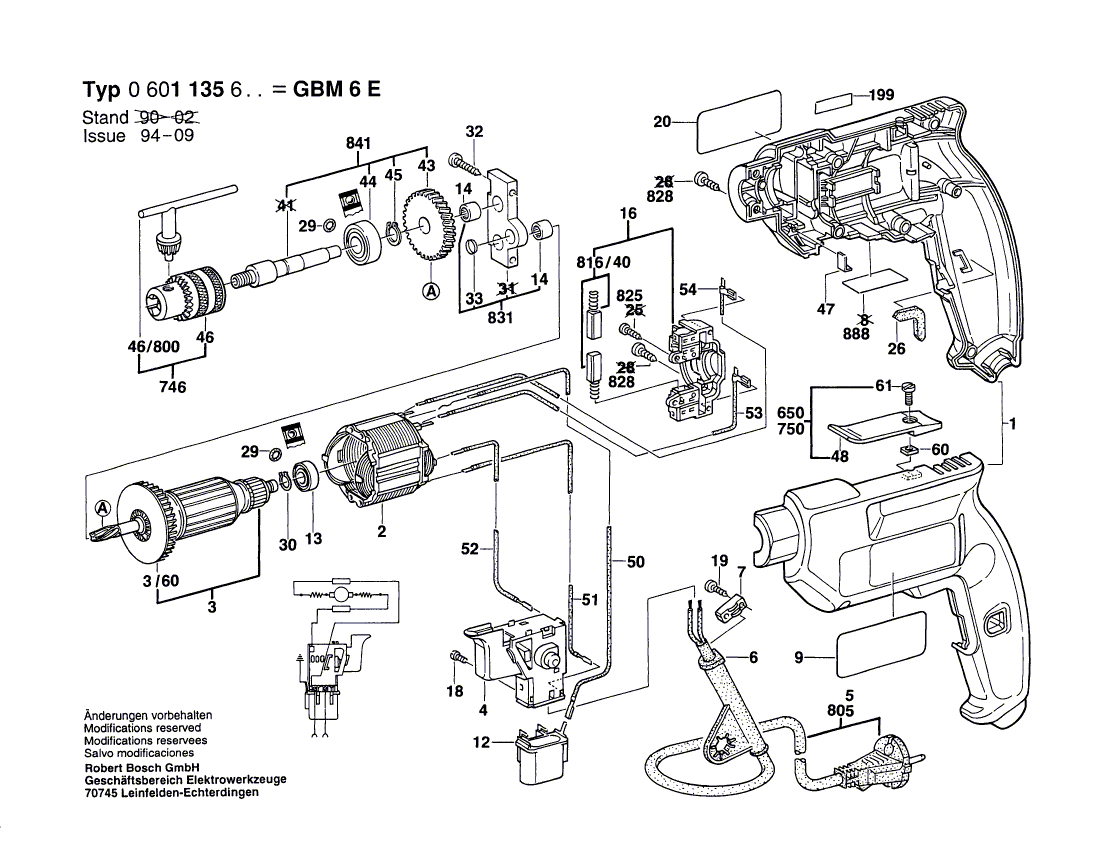 Zeichnungen von Bosch Bohrmaschine GBM 6 E mit der Geräte-Artikelnummer 0 601 135 603