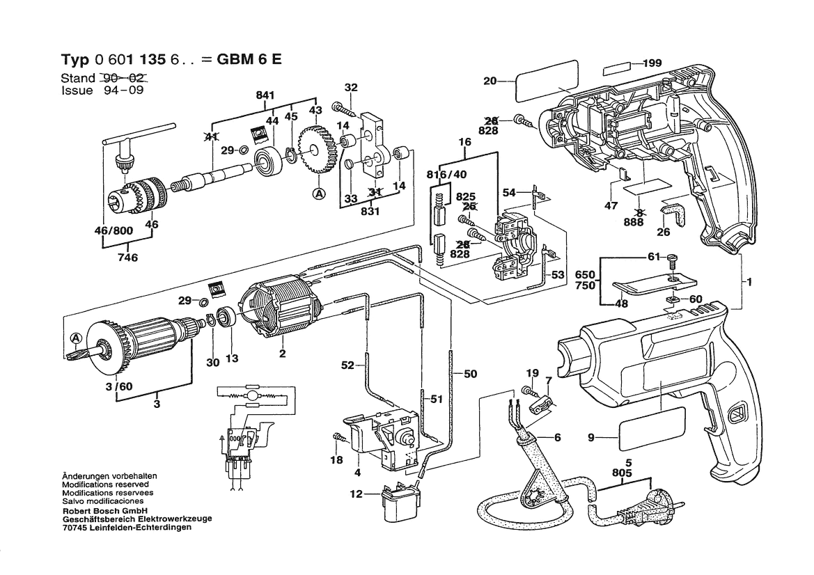 Zeichnung Sollten Sie Fragen zu einem Ersatzteil vom Bosch Bohrmaschine GBM 6 E | 230 V | 001 - EU (0 601 135 603) haben, können Sie uns gerne eine E-Mail (mit einem Foto vom Typenschild Ihres Gerätes) schreiben oder eine Ersatzteilanfrage stellen.