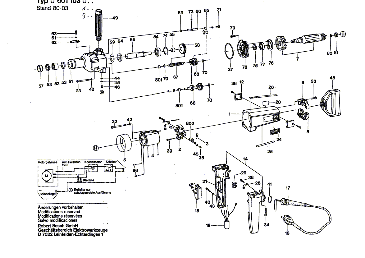 Zeichnungen von Bosch Bohrmaschine UB2J77 mit der Geräte-Artikelnummer 0 601 103 116
