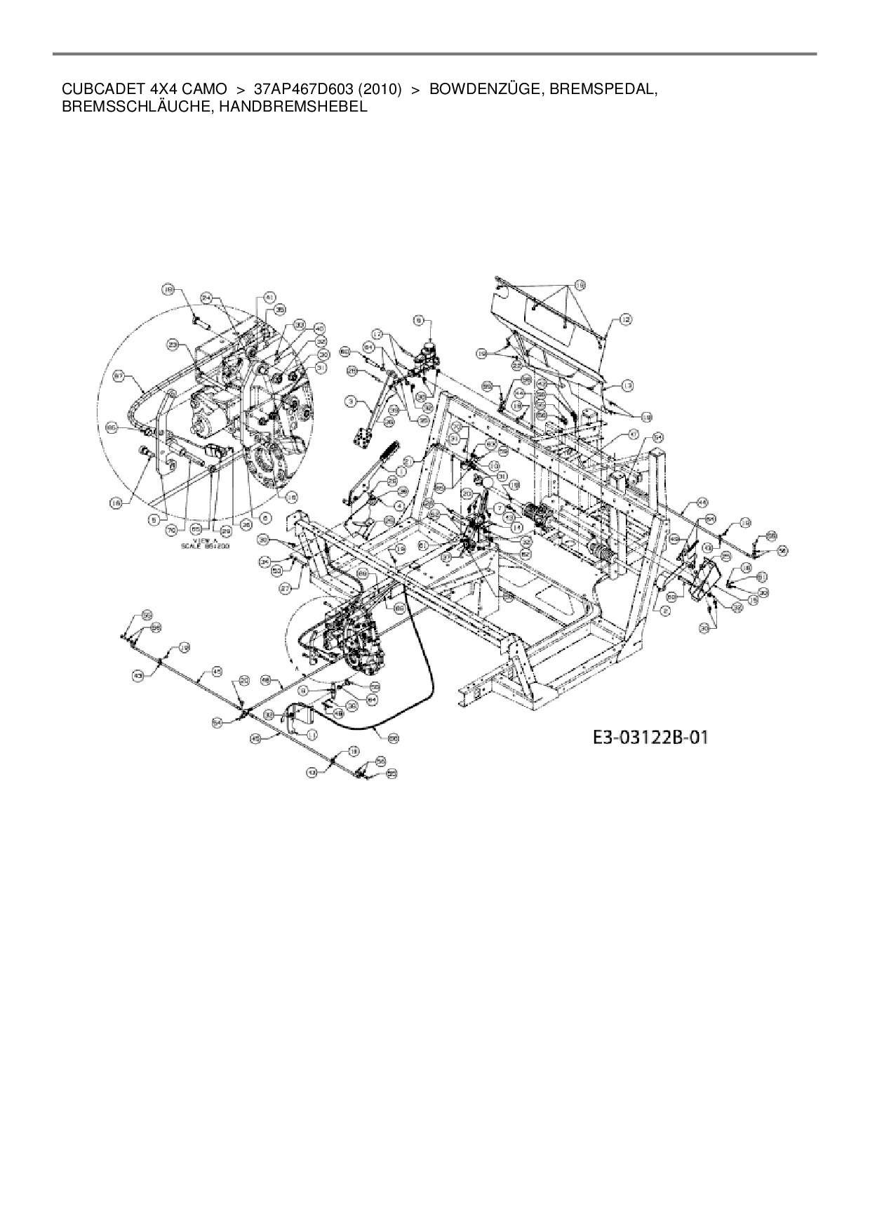 Download Ersatzteil-Zeichnung Cub Cadet CubCadet 4X4 Camo Zeichnung Bowdenzüge, Bremspedal, Bremsschläuche, Handbremshebel (PDF-Format)