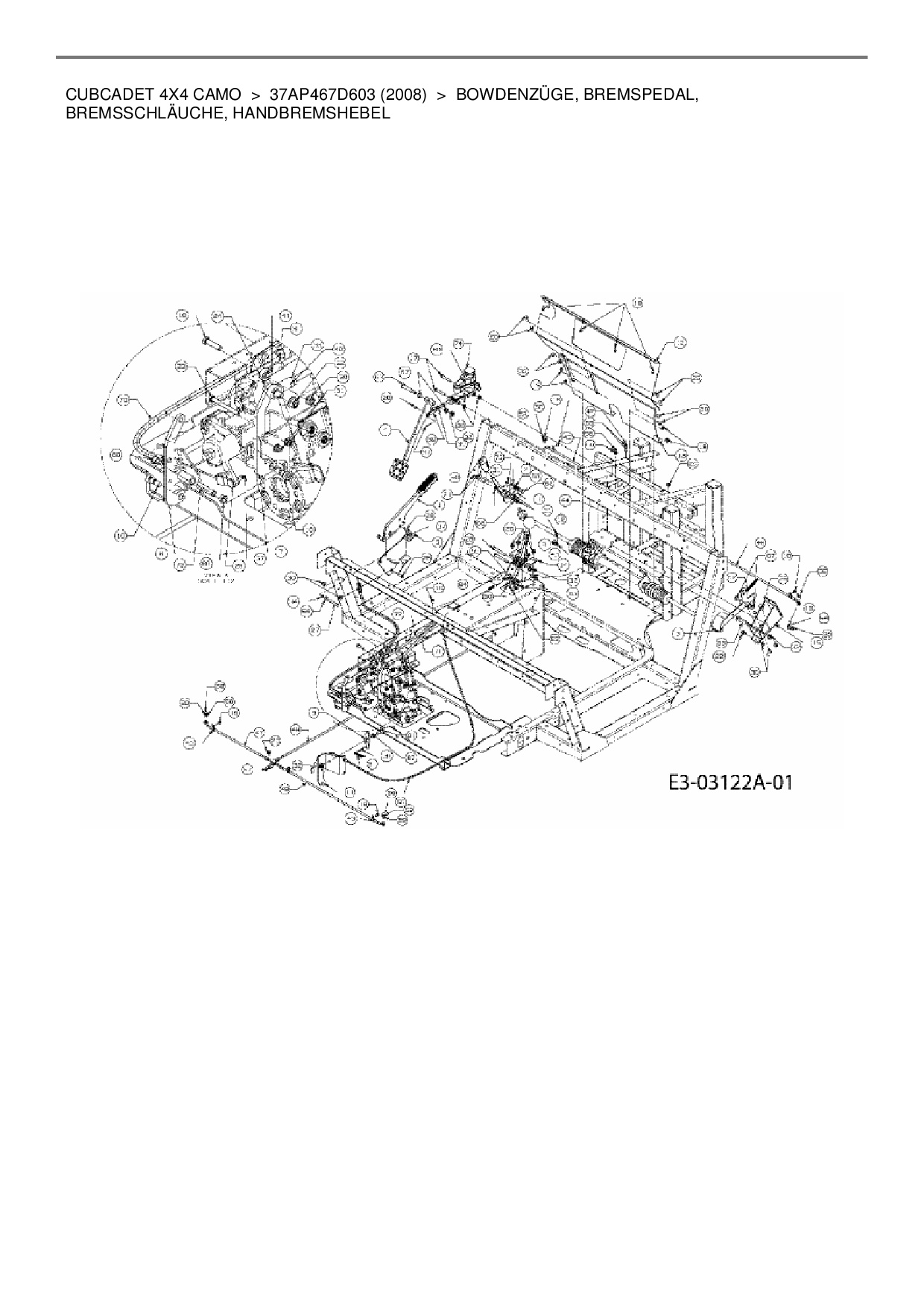 Ersatzteile für Utility Vehicle Cub Cadet CubCadet 4X4 Camo aus der Zeichnung Bowdenzüge, Bremspedal, Bremsschläuche, Handbremshebel: