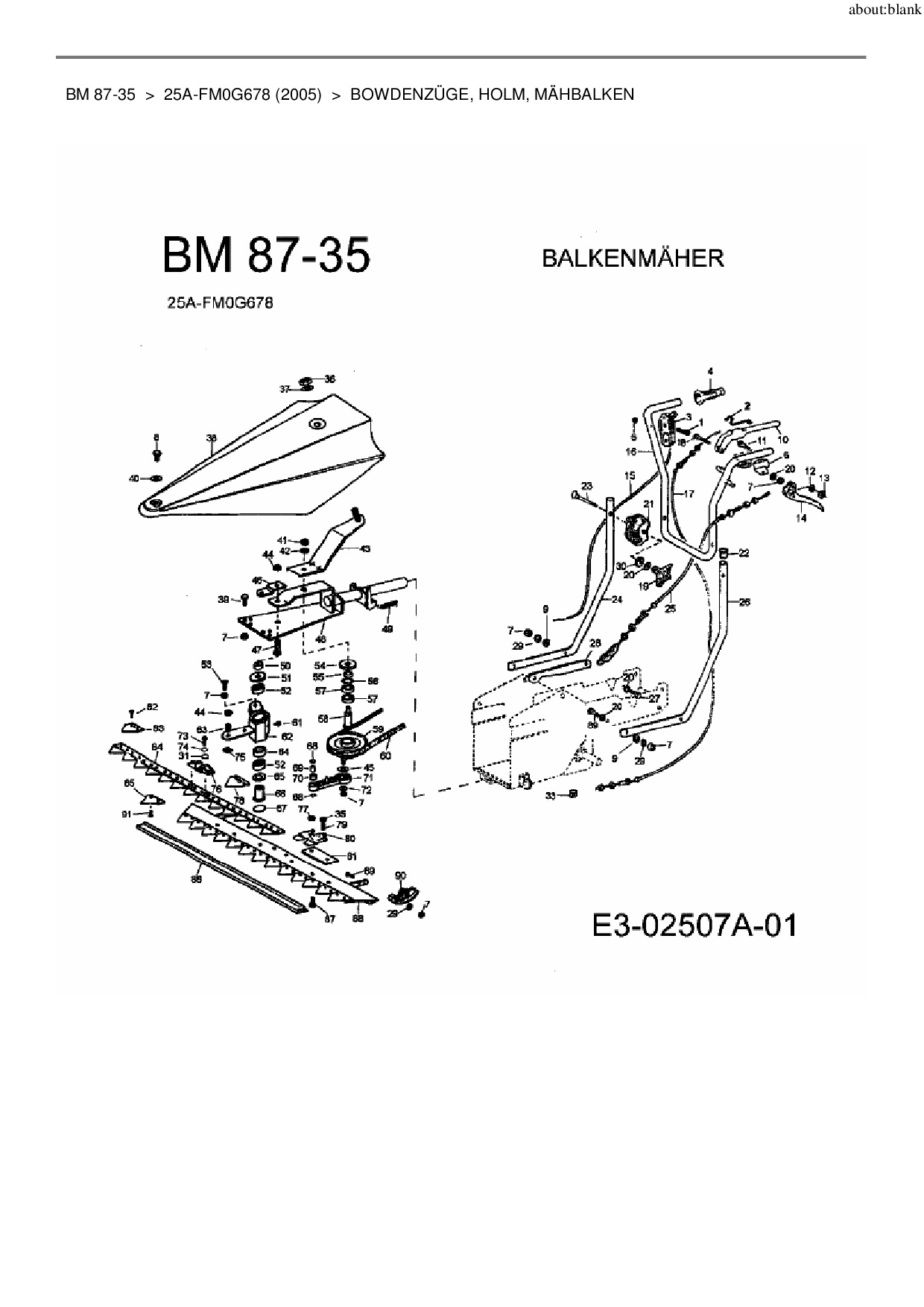Zeichnung für MTD Balkenmäher BM 87-35 mit der Geräte-Artikelnr. 25A-FM0G678 ab Baujahr 2005: