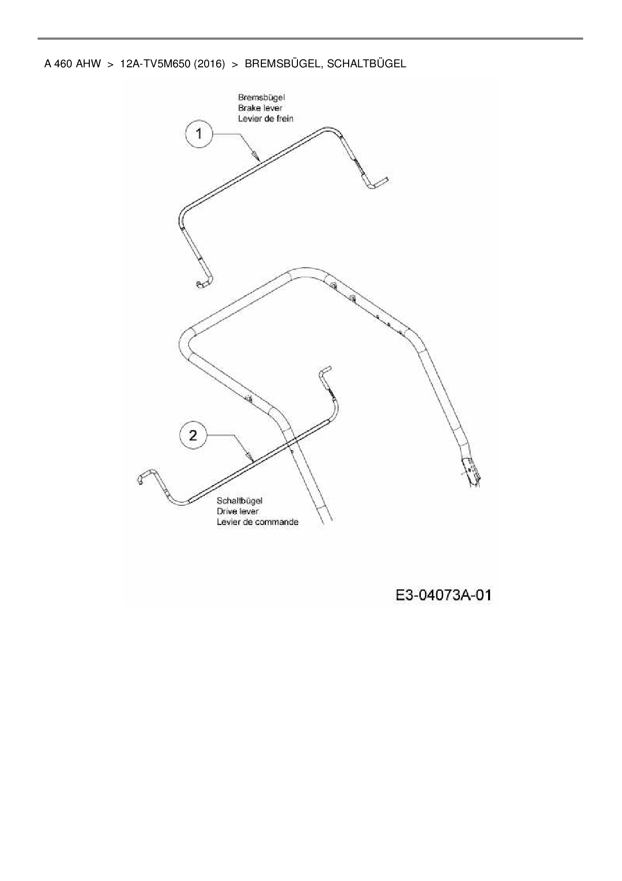 Download Ersatzteil-Zeichnung Wolf-Garten A 460 AHW Zeichnung Bremsbügel, Schaltbügel (PDF-Format)
