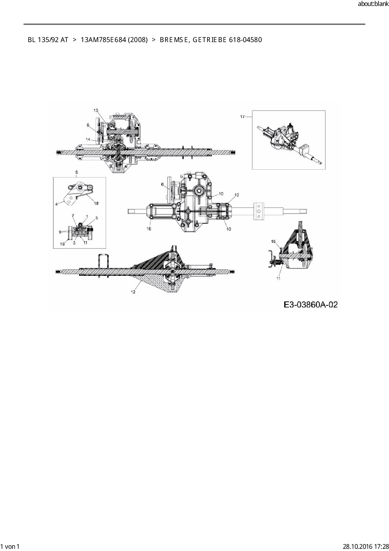 Ersatzteile für Rasentraktor Bolens BL 135/92 AT aus der Zeichnung Bremse, Getriebe 618-04580: