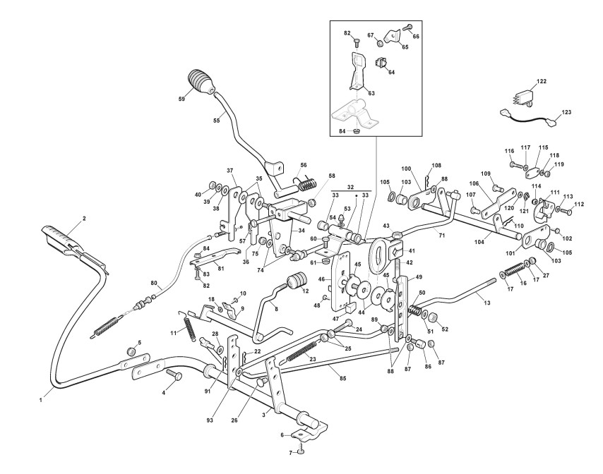 Hier finden Sie alle Ersatzteile von Mountfield Aufsitzmäher XF 140 HD (Geräte Nr 2T0220273/MTF) ab 2021 aus der Zeichnung Bremse und Wechsel Antrieb (1):
