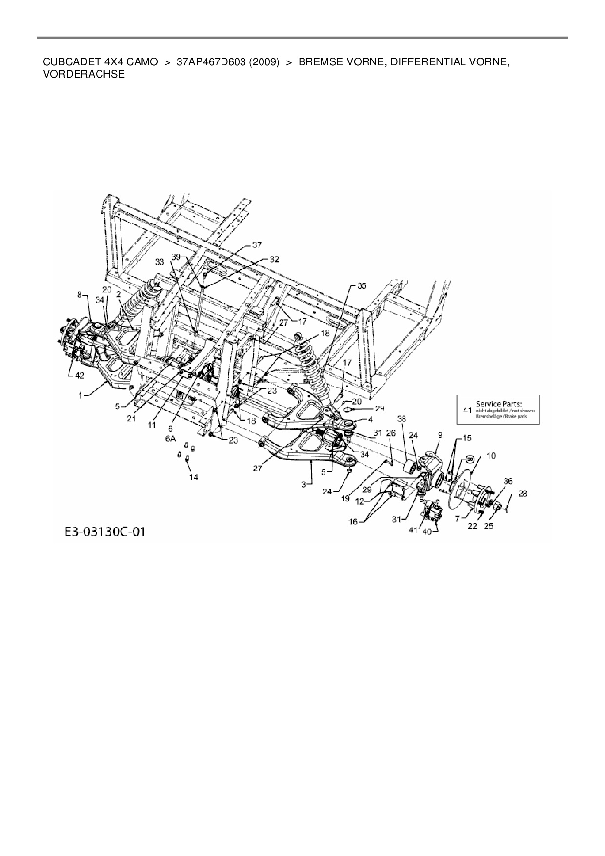 Download Ersatzteil-Zeichnung Cub Cadet CubCadet 4X4 Camo Zeichnung Bremse vorne, Differential vorne, Vorderachse (PDF-Format)