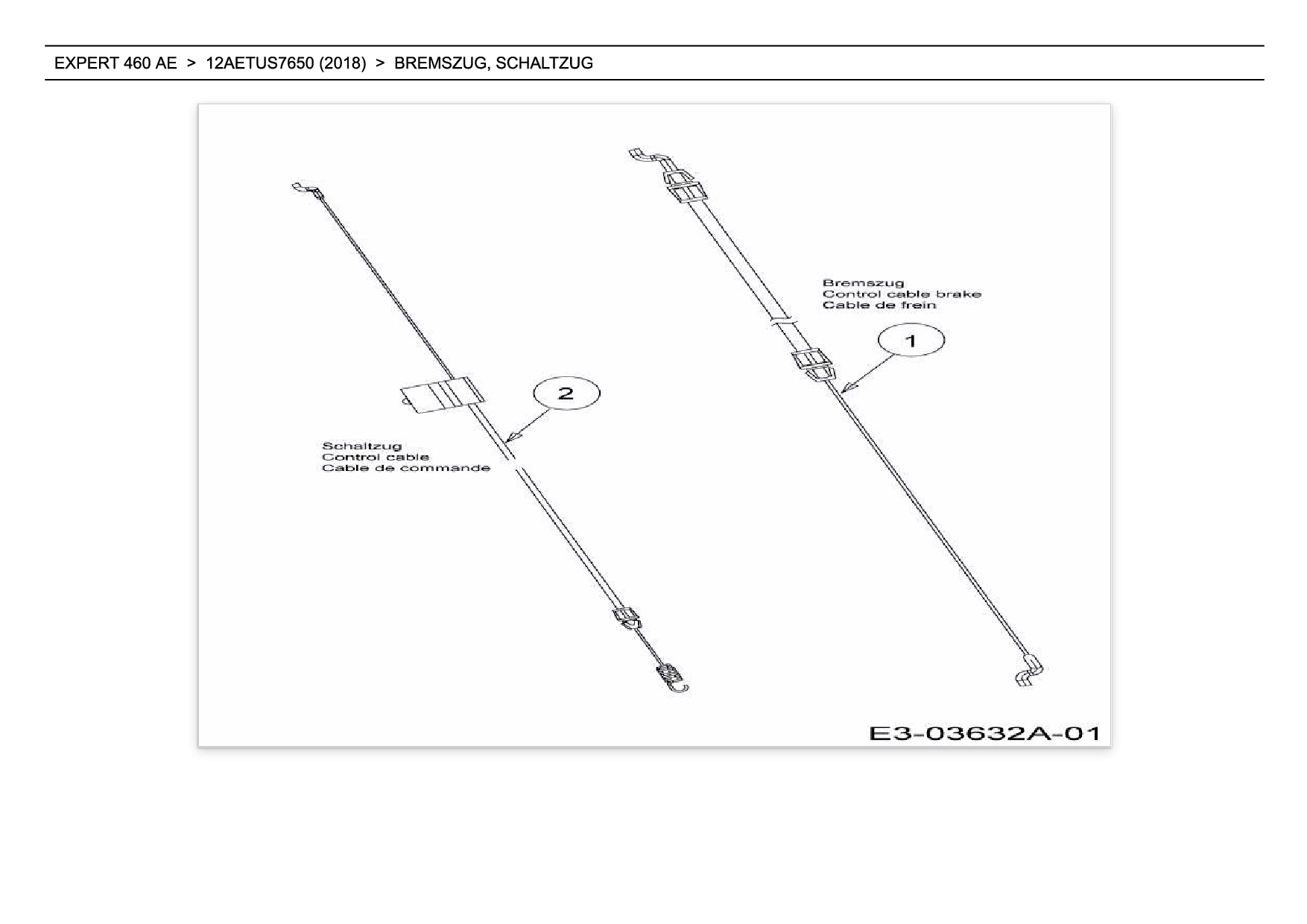 Ersatzteile für Motormäher mit Antrieb Wolf-Garten Expert EXPERT 460 AE aus der Zeichnung Bremszug, Schaltzug: