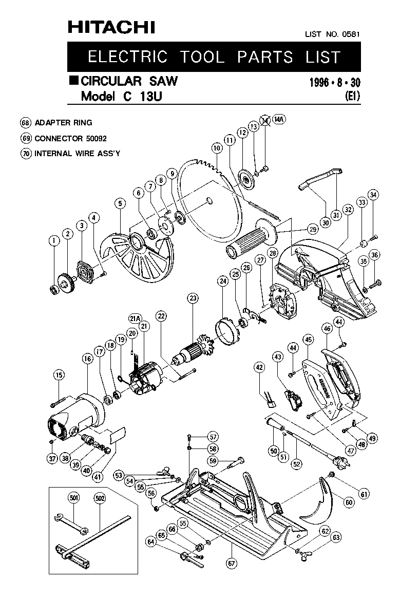 Folgende Ersatzteile für Hikoki (Hitachi) C13U - Kreissäge können Sie hier bestellen: